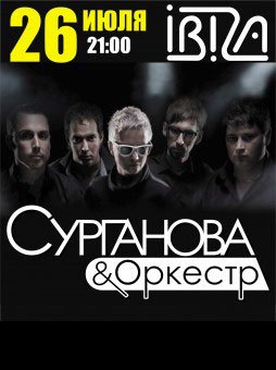 Сурганова и оркестр состоится 26 июля 2012, 21:00, четверг в Клуб "Ibiza". С помощью сервиса internet-bilet.ua, Вы сможете с легкостью забронировать, заказать и купить билеты на интересующий Вас концерт, спектакль, оперу, балет, мастер-классы, спортивные и детские мероприятия, оплатив их самым удобным для Вас способом: через интернет банковской картой VISA/MasterCard, наличными или курьером, если сделаете заказ билета c доставкой.