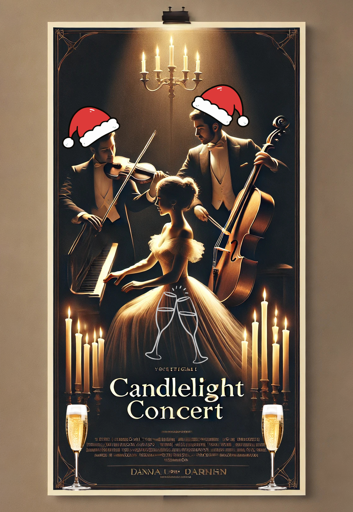 Приглашаем вас на волшебный Candlelight concert, где мягкий свет свеч создаст неповторимую атмосферу музыкальной магии. В этот вечер скрипка, виолончель и фортепиано примут вас в музыкальное путешествие от классики до современных шедевров.