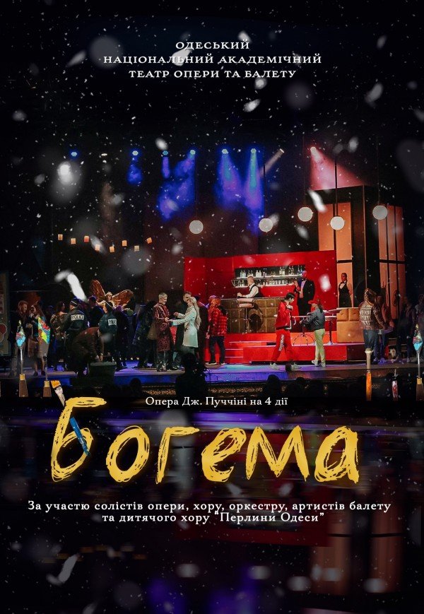 Опера "Богема" відбудеться 5 квітня 2026, 16:00, неділя в Одеський національний академічний театр опери та балету. За допомогою сервісу internet-bilet.ua, Ви зможете з легкістю забронювати, замовити та купити квитки на концерт, спектакль, оперу, балет, майстер-класи, спортивні та дитячі заходи, що Вас цікавлять, оплативши їх найбільш зручним для Вас способом: через інтернет банківською карткою VISA/MasterCard, готівкою або кур'єром, якщо зробите замовлення квитка з доставкою.