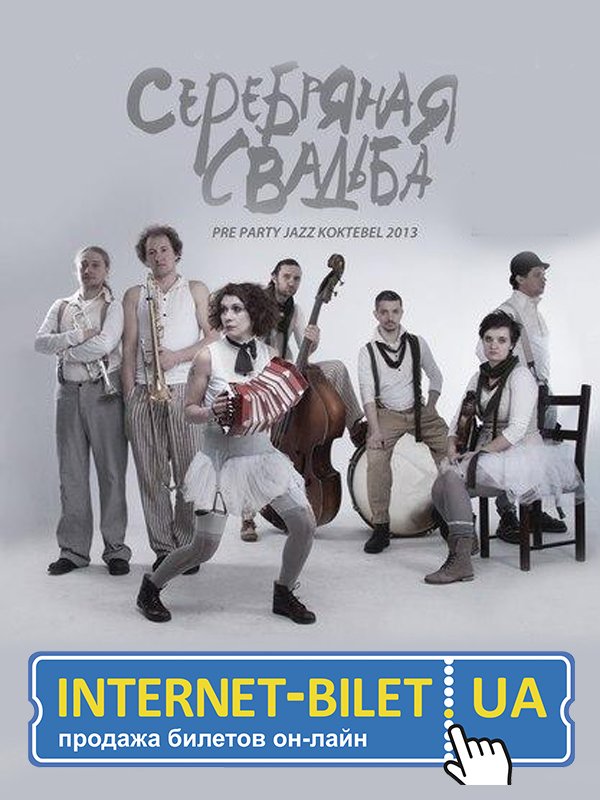Серебряная свадьба відбудеться 23 серпня 2013, 22:00, п’ятниця в Клуб "Пляжник". За допомогою сервісу internet-bilet.ua, Ви зможете з легкістю забронювати, замовити та купити квитки на концерт, спектакль, оперу, балет, майстер-класи, спортивні та дитячі заходи, що Вас цікавлять, оплативши їх найбільш зручним для Вас способом: через інтернет банківською карткою VISA/MasterCard, готівкою або кур'єром, якщо зробите замовлення квитка з доставкою.