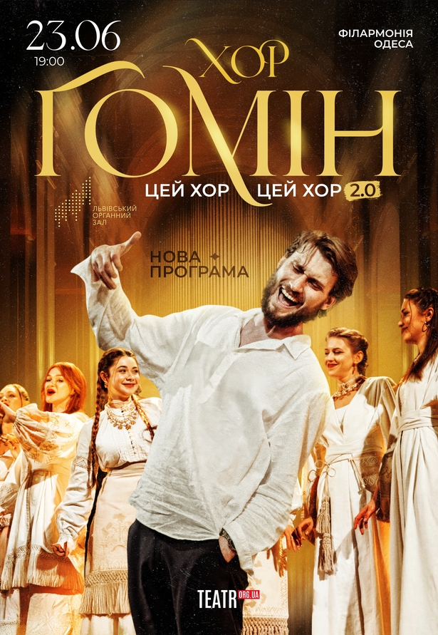 Хор "Гомін" відбудеться 23 червня 2026, 19:00, вівторок в Одеська обласна філармонія. За допомогою сервісу internet-bilet.ua, Ви зможете з легкістю забронювати, замовити та купити квитки на концерт, спектакль, оперу, балет, майстер-класи, спортивні та дитячі заходи, що Вас цікавлять, оплативши їх найбільш зручним для Вас способом: через інтернет банківською карткою VISA/MasterCard, готівкою або кур'єром, якщо зробите замовлення квитка з доставкою.