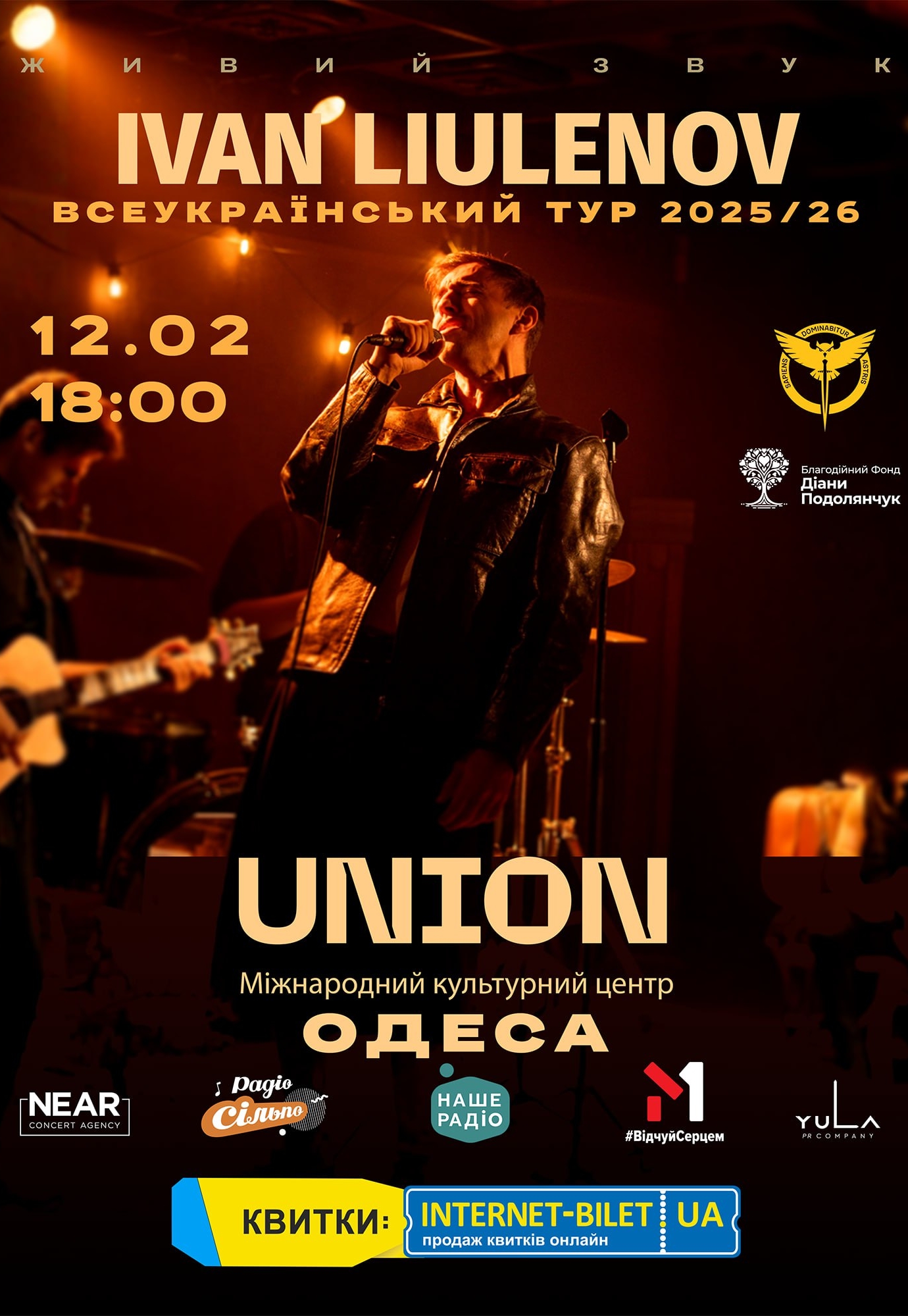 Ivan Liulenov відбудеться 12 лютого 2026, 18:00, четвер в Міжнародний культурний центр "Уніон". За допомогою сервісу internet-bilet.ua, Ви зможете з легкістю забронювати, замовити та купити квитки на концерт, спектакль, оперу, балет, майстер-класи, спортивні та дитячі заходи, що Вас цікавлять, оплативши їх найбільш зручним для Вас способом: через інтернет банківською карткою VISA/MasterCard, готівкою або кур'єром, якщо зробите замовлення квитка з доставкою.