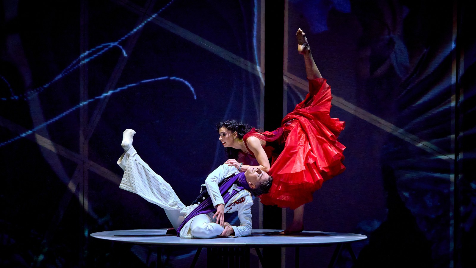 Балет «Травіата» – це романтичне зізнання в любові до оперного мистецтва, втілене мовою сучасної хореографії та режисури. Складний мультимедійний відеоконтент, насичена світлова партитура, авторські концептуальні костюми – усе це створює багатошаровий сценічний світ цієї вистави, даючи змогу глядачеві емоційно повністю розчинитися в цьому яскравому театральному всесвіті.