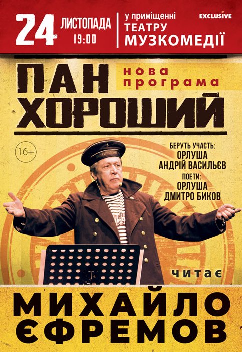 Придбати квиток на "Господин Хороший". Михайло Єфремов можливо не відходячи від комп'ютера!