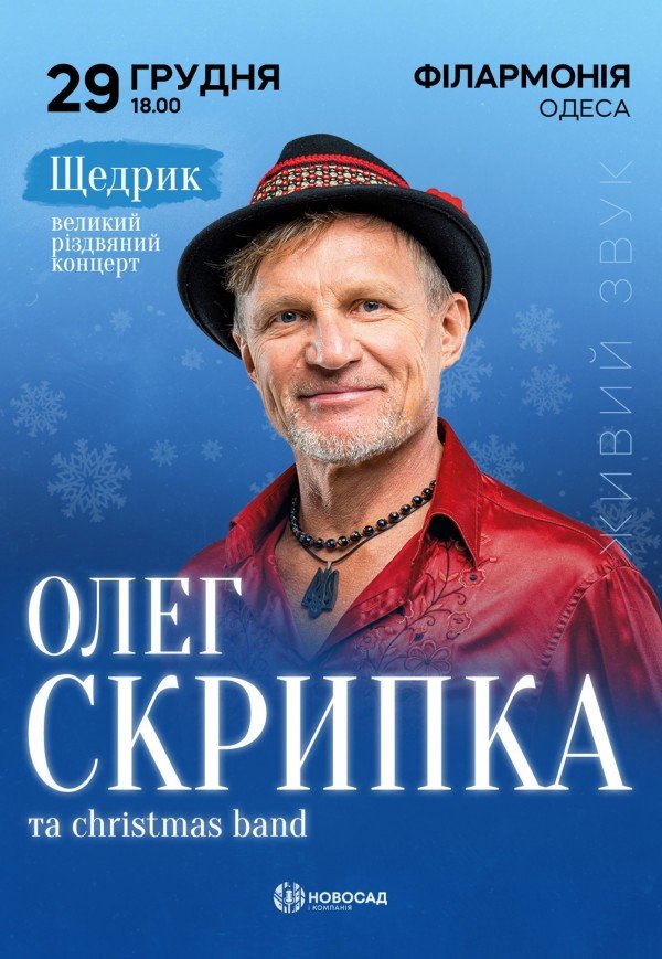 Олег Скрипка «Щедрик» відбудеться 29 грудня 2025, 18:00, понеділок в Одеська обласна філармонія. За допомогою сервісу internet-bilet.ua, Ви зможете з легкістю забронювати, замовити та купити квитки на концерт, спектакль, оперу, балет, майстер-класи, спортивні та дитячі заходи, що Вас цікавлять, оплативши їх найбільш зручним для Вас способом: через інтернет банківською карткою VISA/MasterCard, готівкою або кур'єром, якщо зробите замовлення квитка з доставкою.